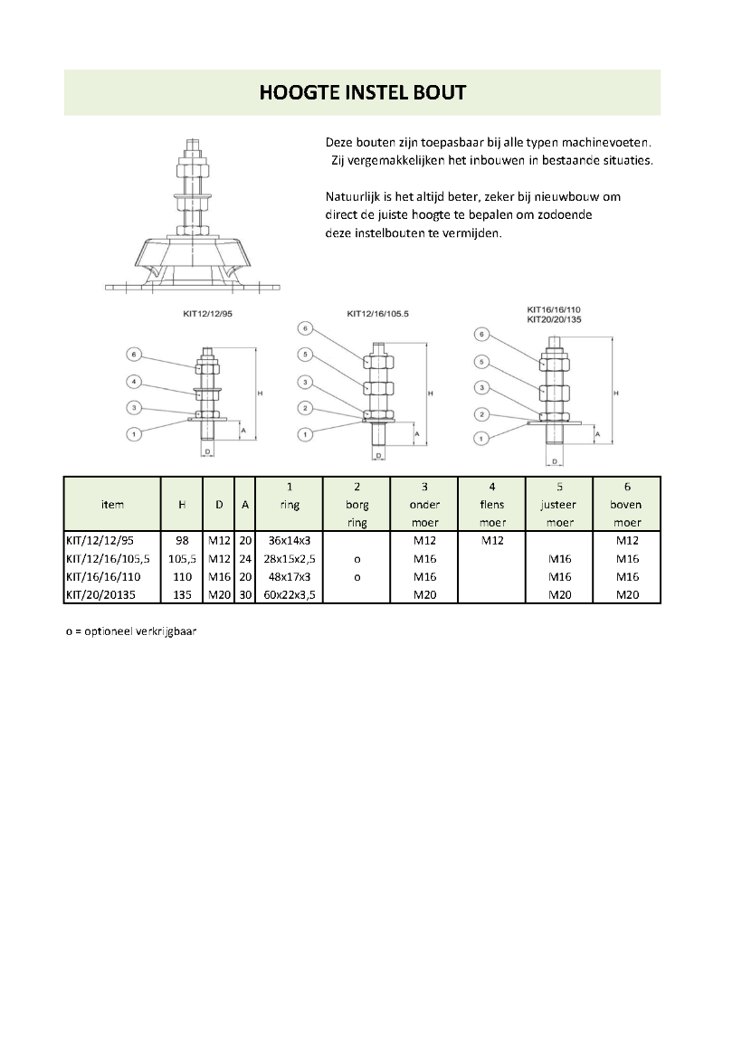 Trillingdempers > Machinevoeten > Hoogte instelling