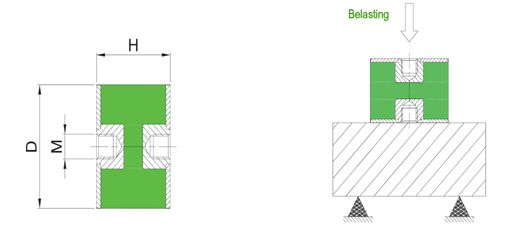 A complete range of mounts, which can be fixed in alternative ways with both internal and external thread and used in compression or shear.
